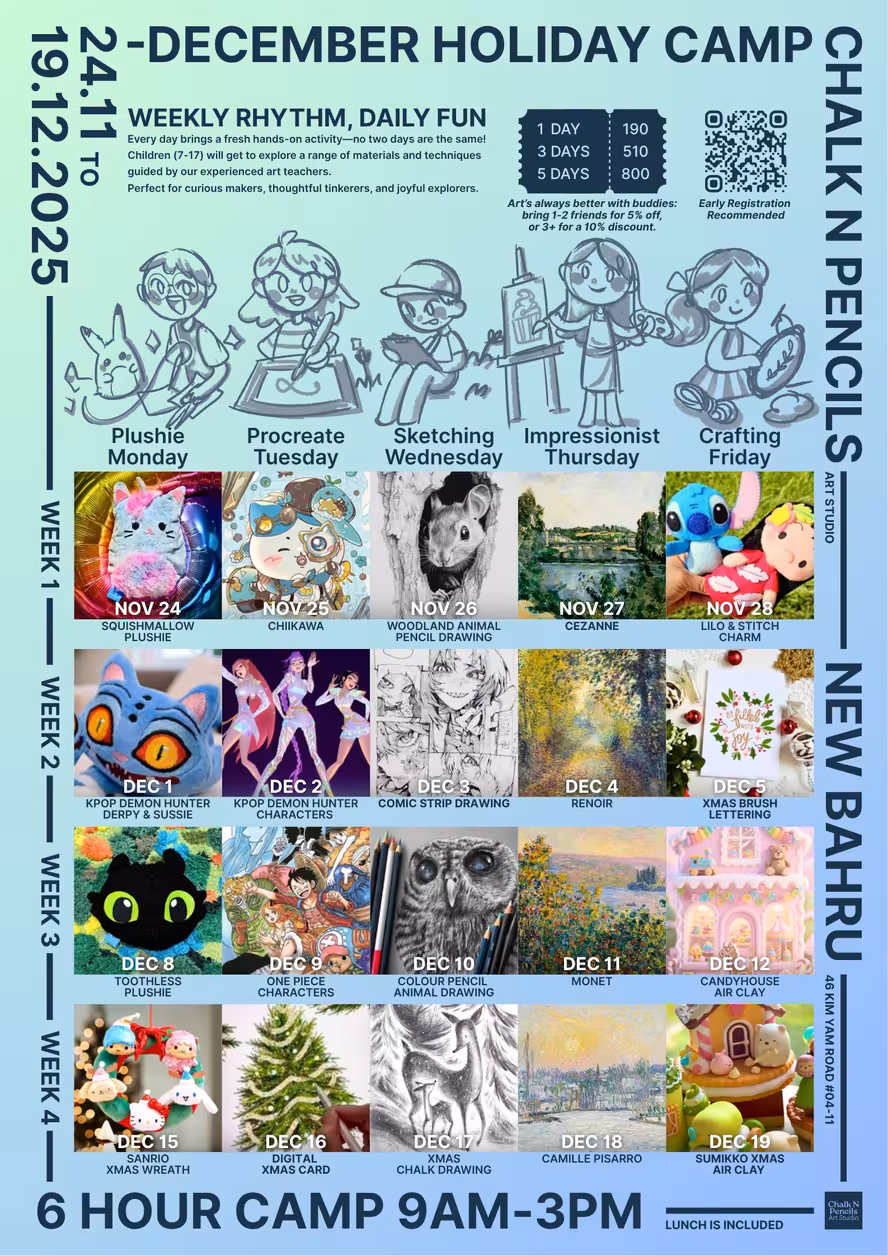 Our flagship studio at 46 Kim Yam Road brings art to life in the heart of a vibrant creative hub. From toddlers to adults, we offer inspiring classes, workshops, and events designed to spark curiosity and nurture expression.